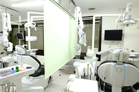閉塞感を感じさせないオープンタイプの診療室です。治療中のプライバシーを配慮して、各ユニット間は仕切りで区切られております。